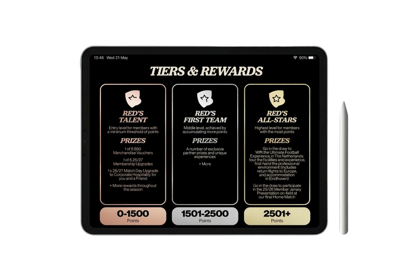 The Members' Loyalty Program is designed around a simple, transparent mechanic: one behaviour, one reward. After each home game, attendance data is uploaded, points are calculated automatically and members can track their progress in real time.